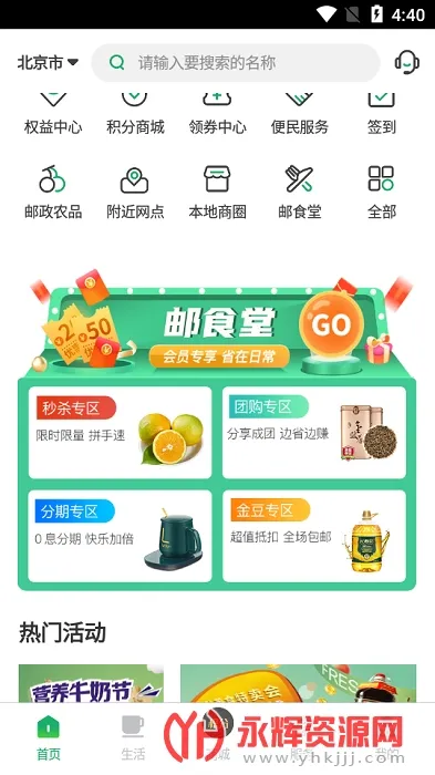 1、邮生活(邮政生活服务)提供多种优惠,会员能享受团车、优惠报刊、集邮、DIY明信片在线购买等特权,还有各类实物积分商品可兑换,超值优惠触手可得。