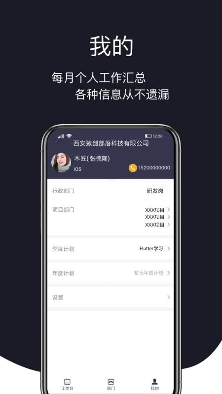 4、提供员工通讯录,可在线查看部门同事联系方式,个人工作汇总也会自动进行,员工能随时查看办公情况。