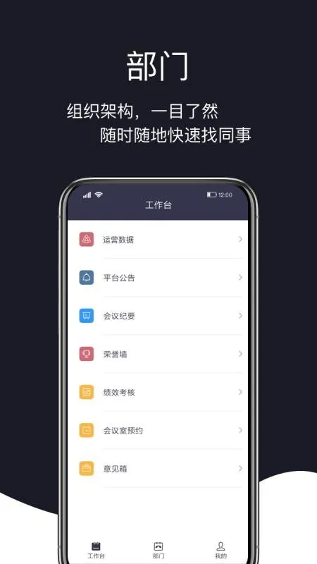 猿创办公是一款协同办公软件,集移动办公、考核、通讯录、任务通知等功能于一体。能助员工高效规划任务、汇总工作,提供清晰公司架构和精准信息推送,满足全场景办公需求 。