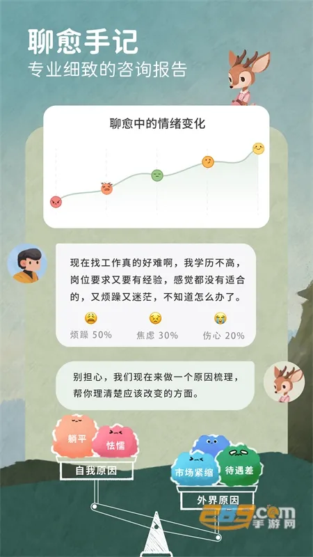 3、结合智能与心理治疗,利用神奇思维导图分析情绪,提供专业又独特的帮助。