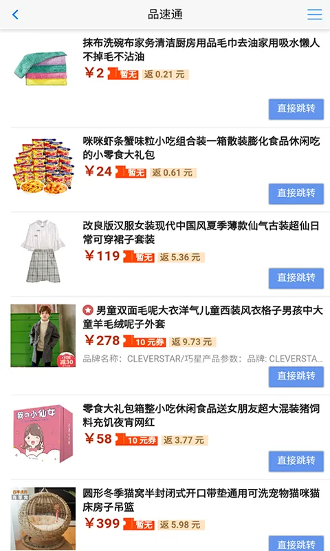 3、<品速通2025官方最新版本>合作伙伴众多,覆盖京东、淘宝、苏宁等知名电商平台,各种商品和服务都能找到优惠返利。