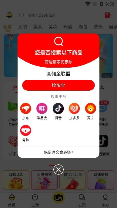 1、高佣金联盟(社交电商平台)提供海量优惠券,每日更新,能满足不同用户购物需求,实现自购省钱。