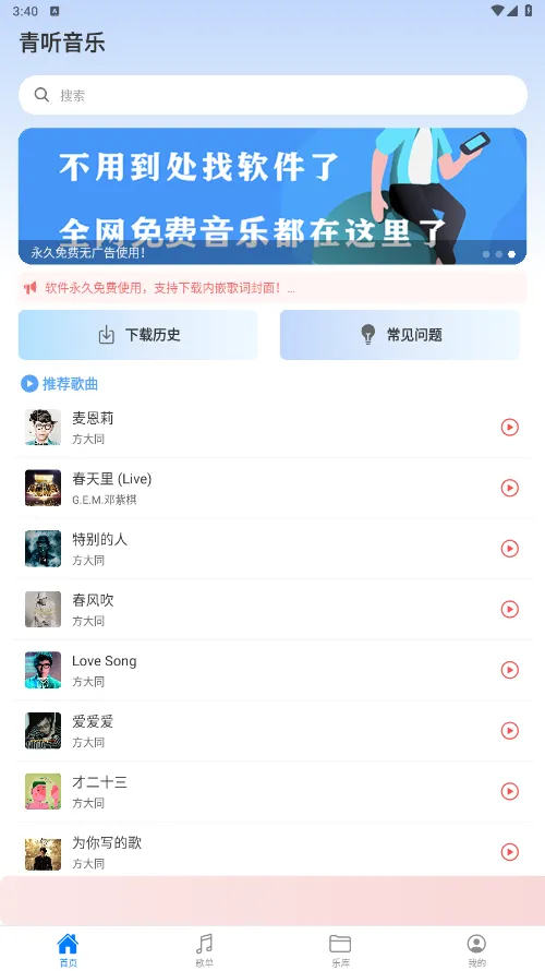 3、免费无广告干扰,用户可享受纯净听歌体验,无需付费且没有广告打扰,沉浸音乐世界。