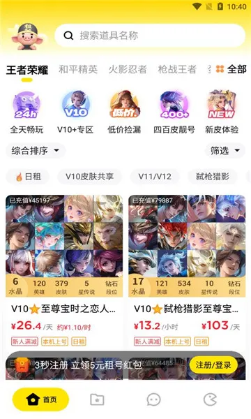 4、服务贴心优惠多:24小时客服随时提供帮助,新人注册首冲有优惠,可领红包,还有特价专区能低价体验百万优质账号。