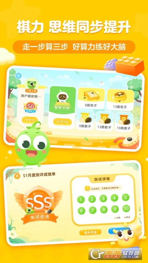 2、采用精美的卡通场景,专为4-12岁儿童量身定制,支持在线配对对弈,画面符合儿童喜好,学习更容易被接受。