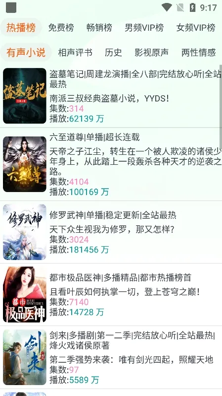 1. 资源丰富全面,涵盖全网热门小说,还有有声小说、经典图书、热门电台等,满足不同听书口味,无论何种小说都能满足阅读欲望。