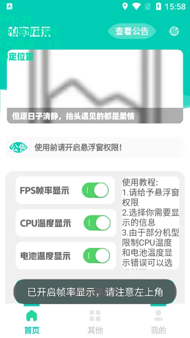 3、使用便捷,无需复杂操作,有root权限即可在大部分设备上使用,能显示FPS帧数与内存占用情况。