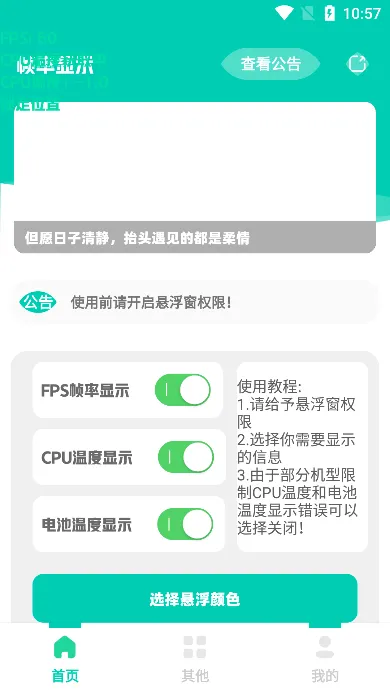 1、帧率显示器最新手机版操作简便,无需复杂设置就能快速启用,全功能集成在主界面,用户上手轻松。