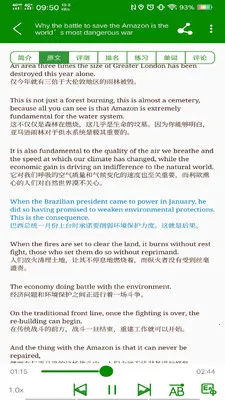 3、功能强大实用:集合了每日更新、自动跟读、屏幕取词等多个功能,还有语音调速、单句播放等特色功能。口语评测可定位发音错误和缺陷,每篇文章有配套习题检测掌握程度。