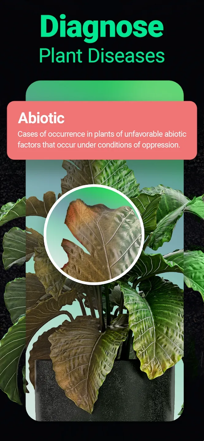 3、诊断很实用:无需成为植物护理专家,拍摄植物症状照片,通过植物病害识别器检查,就能获得病情详细描述以及适当的治疗和预防建议。