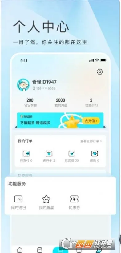 个人中心设计合理,一目了然,用户关注的信息都能在此找到。