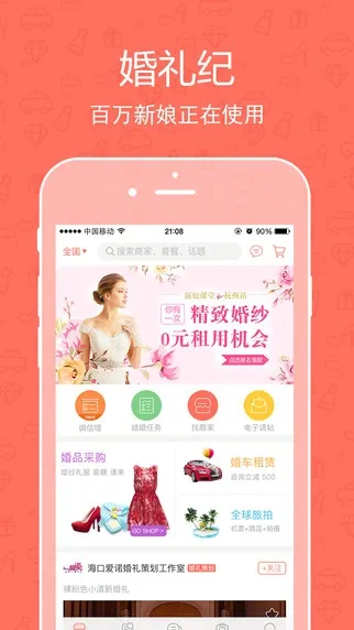 2、服务省心省力省钱:全国20万优质结婚商家入驻,有无忧订、买贵必赔等服务保障,省心备婚;上亿新娘分享备婚攻略,还有结婚顾问专属服务,省力备婚;包含全网性价比套餐和海量优惠折扣专场,节省结婚开支。