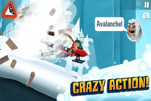 2、多样玩法乐趣多:玩法融合跑酷与独特坐骑系统、特技动作,玩家可以骑乘企鹅、雪怪、老鹰等动物,获得不同加速效果和防护能力。每局还有随机任务,如完成特定动作或收集物品,增加了重复游玩的挑战性和趣味性。此外,除主线逃离雪崩模式,还有竞速、生存等多种模式。