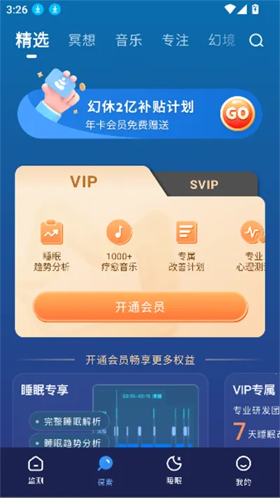 幻休助眠是一款睡眠管理应用,具备睡眠、心率监测功能,能分析数据预警健康风险。有多种原创助眠音乐,还有呼吸练习与音乐疗愈。生成睡眠报告,云端可备份,适合多类人群。