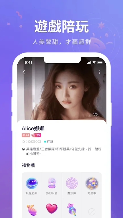 2、娱乐形式多:平台提供多种新颖线上娱乐形式,能语音连麦游戏开黑、唱歌K歌,还有在线打分功能可比拼唱歌水平,也有不少有趣在线游戏等你来玩。