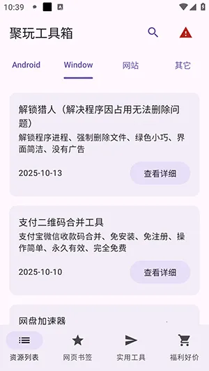 1、聚玩工具箱(App)整合了1000多个实用网站,涵盖各类资源内容,能全方位满足用户多样化需求,无论是解析下载网络资源、处理多媒体文件,还是解决生活中的测量计算难题,它都能搞定。