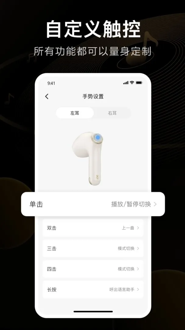 2、个性化定制丰富,能管理蓝牙耳机连接弹窗内容与风格,有简约风、卡通风、科技风等多种模板可选;还能在手势控制中心自定义左右耳机的触控功能,适配不同使用习惯。