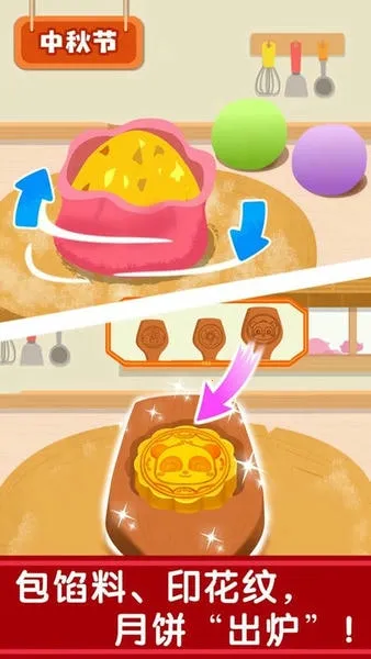 2、玩法体验丰富:游戏玩法多样,如春节贴春联、中秋做月饼、端午包粽子等,每个节日任务都有具体步骤和要求,还能获得趣味贴纸或节日道具解锁新内容,完成任务后可增强亲子互动。