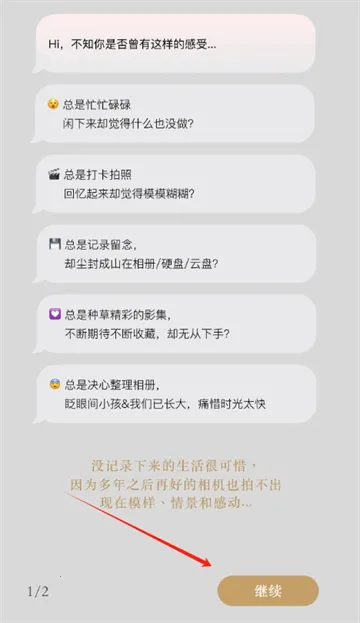 1、以照片形式记录生活点滴,抒发当下心情,不错过重要时刻,将珍贵回忆储存起来,回首能发现生命中有诸多特别时刻。