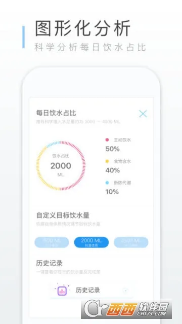 3、数据直观:自动生成周度月度饮水成绩单,以折线图与百分比直观展示补水完成度的可视化数据报告,帮助用户掌握长期饮水规律。