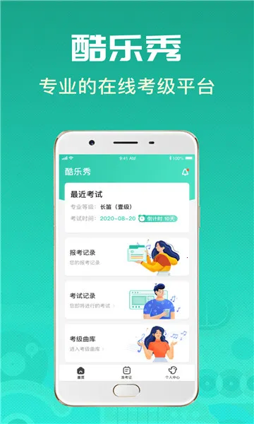 4、考级服务专业:是全国首家拥有音乐类专业直播技术的服务平台,为全国音乐等级考试提供线上考级服务,有规范的线上考级流程,能构建仿真模拟考试场景,提前适应考试氛围。还能在掌中查看准考证信息、进行电子考试、安排考试时间等。
