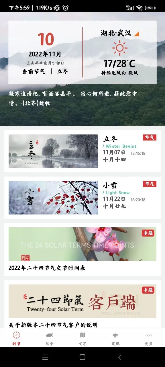 二十四节气安卓版手机版,深入介绍节气时间、意义、由来,涵盖养生建议、诗词赏析、地方习俗。有详细讲解、风景分享、文字抒写等功能,助你多角度了解节气文化。
