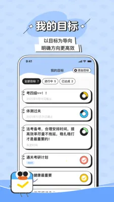 使用场景多样,学习备考、健身锻炼、工作项目管理都适用。在这里找搭子方便,能筛选不同类型。而且能把大目标拆成小目标,更好管理进度。所有任务进度同步,方便监督,让你更有动力完成目标,养成自律好习惯,办事效率也大大提高。总体来说,这款app安全性高,能放心使用,快去下载体验吧。