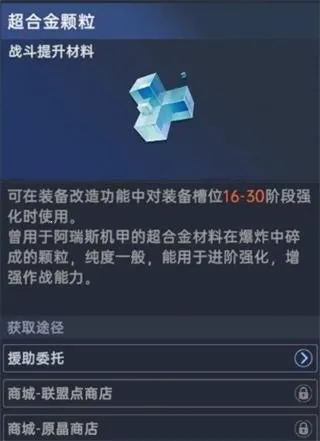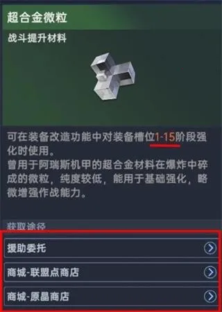 强化需要消耗超合金微粒, 超合金微粒可以从商城的联盟点商店,原晶商店,日程。