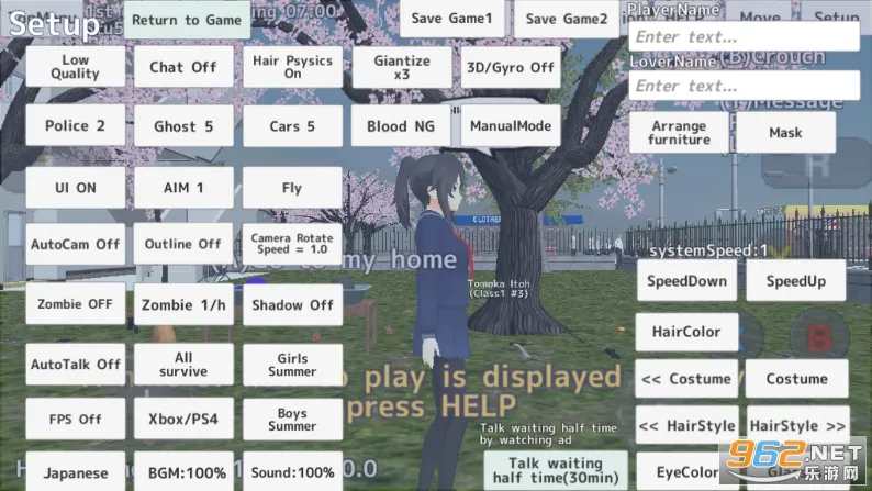 如果你想体验原汁原味的校园女生模拟器,那么这款日语版绝对值得一试!它能让你仿佛置身于真实的日式校园生活中。在这里,你可以尽情自定义角色形象,从超多服饰、发型、饰品里自由搭配,打造独一无二的自己。游戏模拟手柄操作系统,操作超简单,轻松控制角色探索校园。能照着课表上课,感受学习氛围;吃东西、参加社团活动,体验丰富多彩的校园日常;还能和学生、老师互动交流,甚至攻略学生谈一场甜甜的恋爱。要是遇到僵尸危机也不怕,拿起球棒等武器反击,寻找抗僵尸药拯救同伴。另外,像逃脱不良追杀、警察抓小偷等各种趣味玩法等你来挑战。总之,它能满足你对日式校园生活的所有想象,带来超自由、超有趣的游戏体验,快来下载开启你的校园冒险吧!