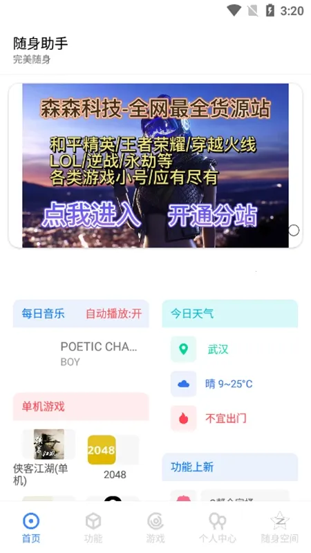 随身助手是一款超棒的手机软件,能满足“随身助手开户”这类需求。它就像一个百宝箱,集合了超多实用小工具。有音乐、视频、漫画、小说等娱乐功能,还有生活百科、学习资料等。涵盖玩机、生活、娱乐等多个板块,后续还会不断新增。这里有日历、天气、天数计算等功能,像手电筒、指南针、计时器等也一应俱全。操作轻松易懂,各年龄段都能很快上手。它的优势明显,近百种工具免费,界面无广告,安装包小不占内存。只下载这一款app,就能拥有所有小工具,节省手机空间。不管是日常办公、学习,还是生活娱乐,它都能满足需求,使用顺畅不卡顿,还能解决各种各样的问题,让你的手机使用更便捷,强烈推荐下载!