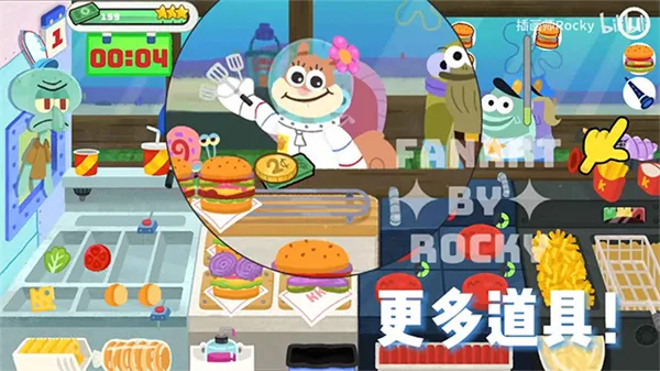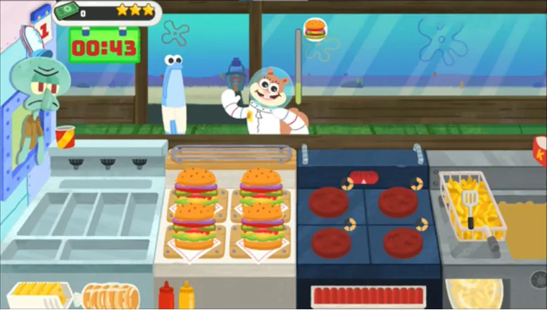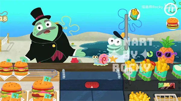 1. 高度还原动画场景,让你仿佛置身于比基尼海滩的蟹堡王餐厅。痞老板、海绵宝宝、章鱼哥等经典角色悉数登场,带来满满的回忆。