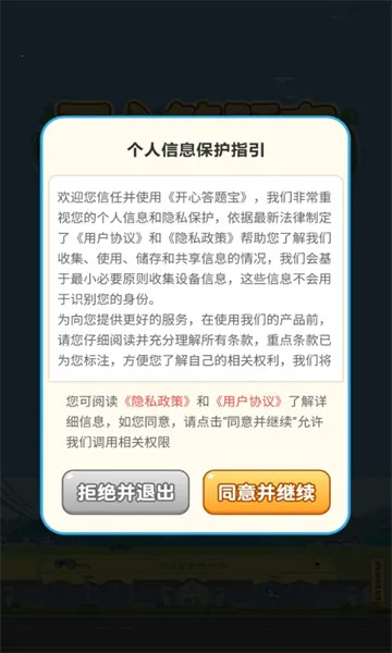 想通过答题轻松赚钱还能提现到支付宝吗?开心答题宝红包版就能满足你!这是一款超有趣的答题领红包游戏。它的题库丰富多样,涵盖科学、历史、地理等各个领域,能让你边玩边拓宽知识面。游戏难度从低到高,操作简单,答对问题就能进入下一关。只要你答对一定数量的题目,就能获得丰厚红包奖励,而且现金提现方式以支付宝为主,安全又可靠。不管是在家闲着,还是在外坐车无聊,都能随时点击畅玩,轻松赚取零花钱,一天的饭钱说不定就能轻松领到!快来下载安装开心答题宝红包版,开启你的答题赚钱之旅吧!先在本站下载安装游戏,进入后同意用户协议,就能开始答题赚钱啦。