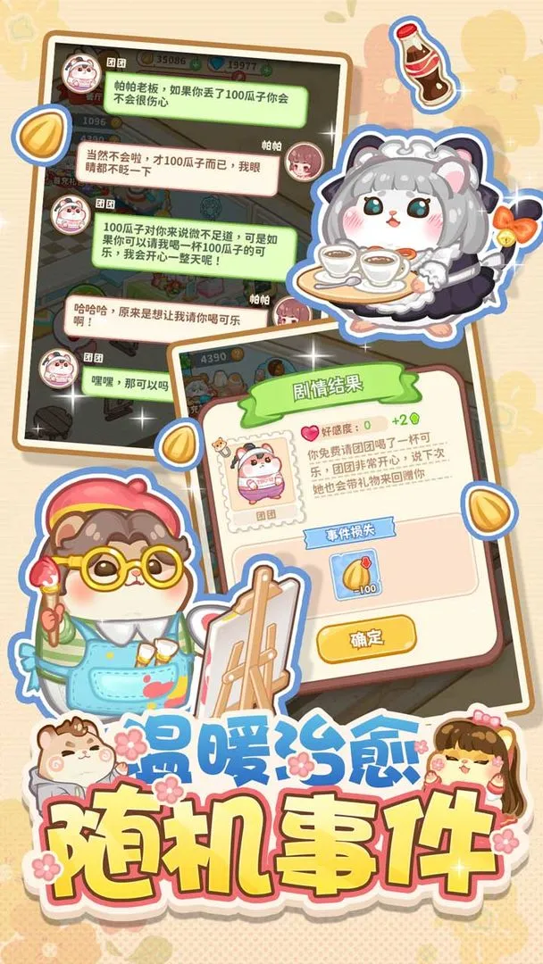 1. 游戏画面色彩清新自然,具有治愈性,能带来唯美的视觉体验和愉快心情。在游戏里,你会置身于一个色彩柔和、画风可爱的商业街世界,看着那些软乎乎的小仓鼠角色,瞬间就能被治愈。