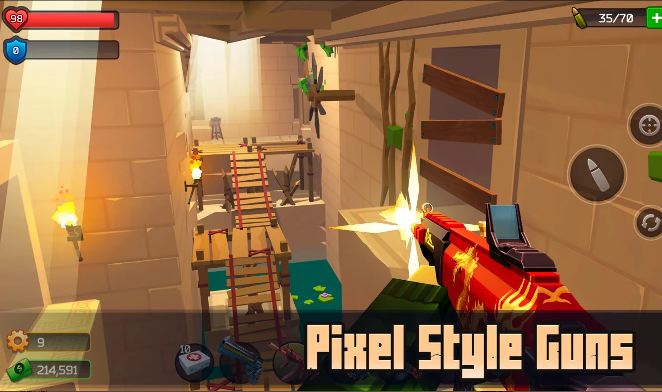 3. 清新简约的像素卡通画风,视觉体验舒适,搭配逼真物理效果,使射击战斗更精彩。
