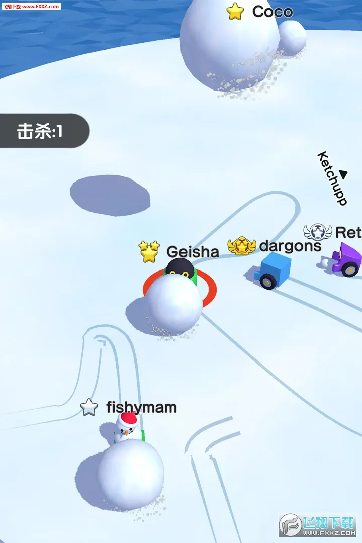1、雪球大作战(雪球对战游戏)的玩法十分有趣。玩家能通过拖动屏幕控制角色移动,灵活走位躲避对手,按住屏幕让雪球越滚越大,松手推出雪球撞击对手使其掉落,成功撞出对手后自身还会变大,最终击败所有对手获胜。