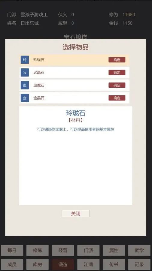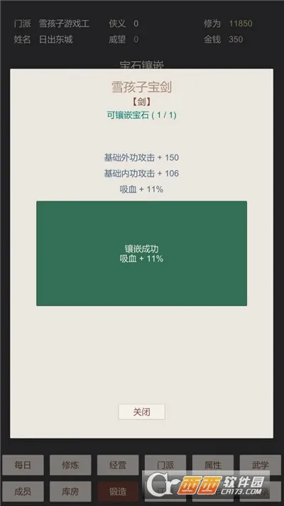 2、玩法丰富,可创建武功、招收弟子、打造兵器、游荡江湖,还能自由决定门派发展方向,影响武林格局。