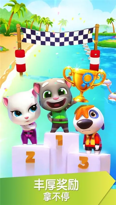 汤姆猫摩托艇2是一款超有趣的水上竞速游戏。在游戏里,你能选择会说话的汤姆猫、安吉拉等可爱角色,驾驶摩托艇在多样赛道上激情比赛。这里有丰富的赛道类型,像海滩赛道等,能体验不同难度的竞技风格。支持名次显示,让你随时了解排行,合理躲避陷阱可冲击高级名次。还有加速赛道,能感受速度激情,快速超越其他玩家。游戏有丰富的金币系统,每次对局都能收集大量金币,用这些金币可以建造自己的房屋,游戏提供众多房屋模板,从基础到高级海滩房屋任你设计,为汤姆猫打造精美的家园。而且它能自由匹配国际玩家,和全球玩家一起对战。操作简单,进入比赛用手指控制角色左右移动躲避障碍物就行。快来下载汤姆猫摩托艇2,开启刺激的水上竞速之旅,享受收集金币、建造家园和与全球玩家对战的乐趣吧!