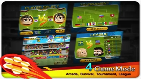 头球得分最新手机版是休闲足球游戏,采用卡通风格,操作简单。有30多种球员可选,3种游戏模式,能蓝牙联机对战。玩家操控大头球员顶球射门,与全球玩家一较高下,赢取世界冠军。
