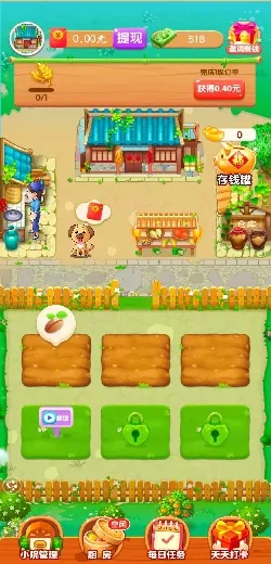 奶奶的小农院是一款能赚钱的休闲模拟经营游戏。在游戏里,玩家可打造独特小农院,开垦土地、播种作物、养殖动物。通过悉心照料,收获农产品后拿去售卖来赚取收益。随着不断积累资金,还能对小院进行扩建与升级,解锁更多有趣玩法。而且,游戏画面清新可爱,操作简单易上手。日常闲暇时玩一玩,既能体验田园生活的惬意,又有机会通过完成任务、达成成就等方式获取真实的现金奖励,让玩家在轻松娱乐中实现一定的收益。