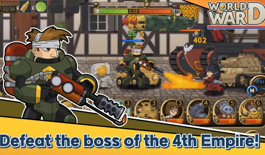 世界大战保卫战以1900年架空历史为背景,玩家组建国家保卫队抵抗侵略。横版卷轴模式,有多种武器载具。需合理部署防御、养成英雄,根据形势调整战术,守护领土完整。