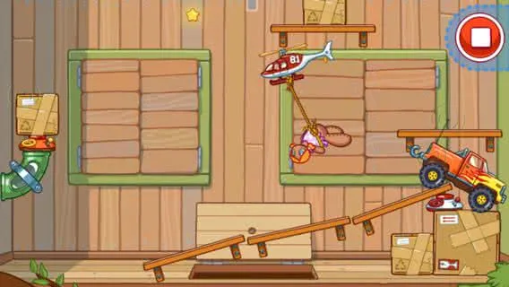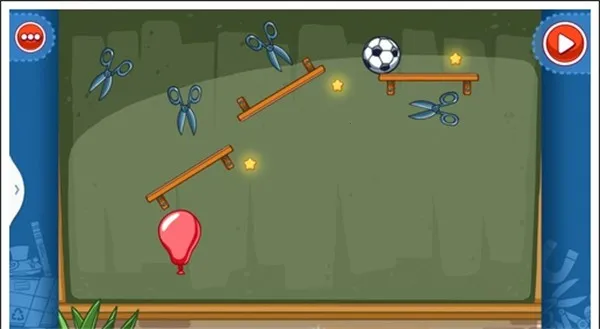 我们只需要将三个木板凳放在剪刀下面,否则气球会碰到剪刀和破掉,这样使气球飞上去,就能获得星星。