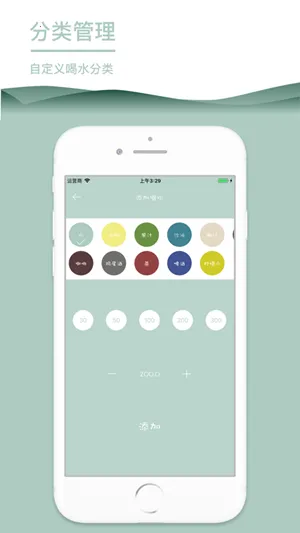 3. **统计功能**:提供日历和趋势图两种呈现方式,方便观察每日喝水走势,从而最有效地制定喝水计划,展示喝水记录。