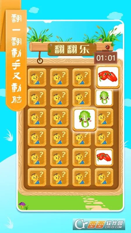 2. 参与配对游戏很有趣。根据提示将蔬果图片与对应名称匹配,巩固记忆,提升观察和辨识能力,培养逻辑思维,加强脑部发育训练。