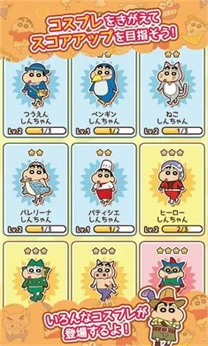 3. 各种经典角色纷纷登场,像风间、妮妮、阿呆、正男等,等着玩家去解锁收集,每个角色还有专属技能助玩家取得高分。