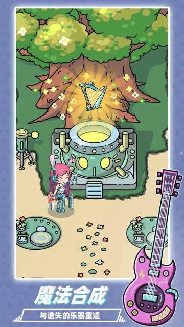3、魔法合成玩法独特,能在主题乐园遇见古今中外音乐宝物,通过音乐树找到绝世珍宝,研究乐器与演奏者的羁绊。