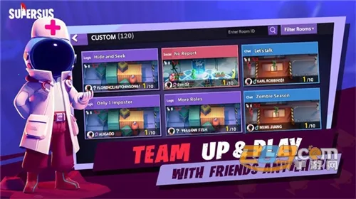 SuperSus是一款太空背景的派对策略烧脑游戏,基于狼人杀玩法打造,融入角色扮演、解密任务等要素。最多10人同局,玩家分船员、内鬼阵营,通过做任务、推理投票找出内鬼或杀光船员取胜,还有多种特色玩法与丰富更新内容。