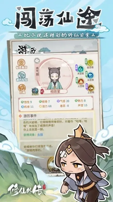 4、享受伙伴相伴:可以收集和培养伙伴组建队伍,部分伙伴携带可继承词条,游历中有概率触发赠送法宝,修仙之旅不寂寞。