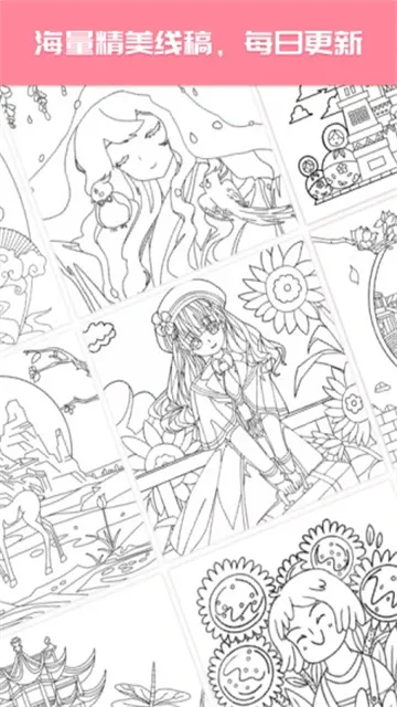 在“大家来涂色”里,有着海量线稿,古风人物、可爱漫画等应有尽有,能找出你喜欢的主题尽情涂色。