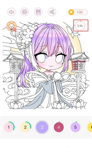 6、选择箭头符号可以返回,第三个可以保存当下涂色,第四可以分享给你的小伙伴分享。