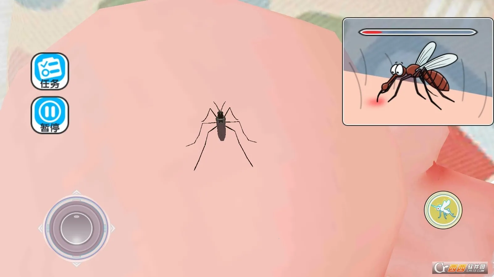 蚊子骚扰模拟器能让你体验当蚊子的独特感觉。在游戏里,你将化身为蚊子,核心目标是叮咬目标获取血液。操作很简单,虚拟摇杆控制飞行,能轻松控制蚊子移动去靠近目标。它设有丰富叮咬任务系统,不同难度的目标部位等你来挑战,挑战高难度可获额外分数。游戏采用高清3D画面构建多样场景,从卧室到客厅等都能探索,逼真音效与物理反馈增强沉浸感。还有动态风险机制,叮咬时要注意躲避人类反击。通过完成任务能闯关成功,解锁更多场景。在这里,你既能享受微观视角的独特生存挑战,又能体验到恶作剧般的解压乐趣,满足你想知道怎么瞄准目标去叮咬的需求,快来试试吧!
